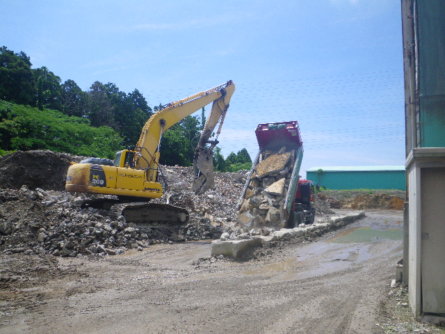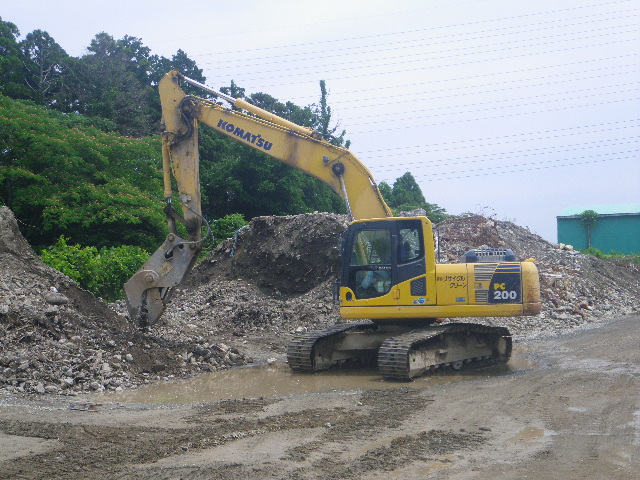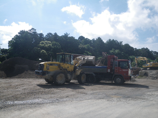 構内では、重機0.7m3が3台・タイヤシャベル1台にて作業しております。