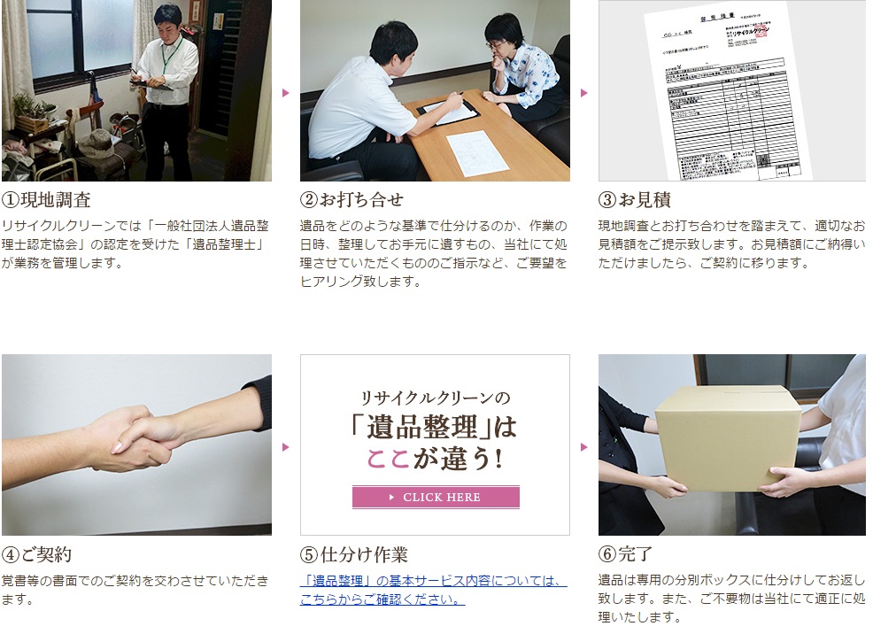 上記画像は遺品整理専用HP( http://www.recycle-clean.co.jp/estate_sale/ )