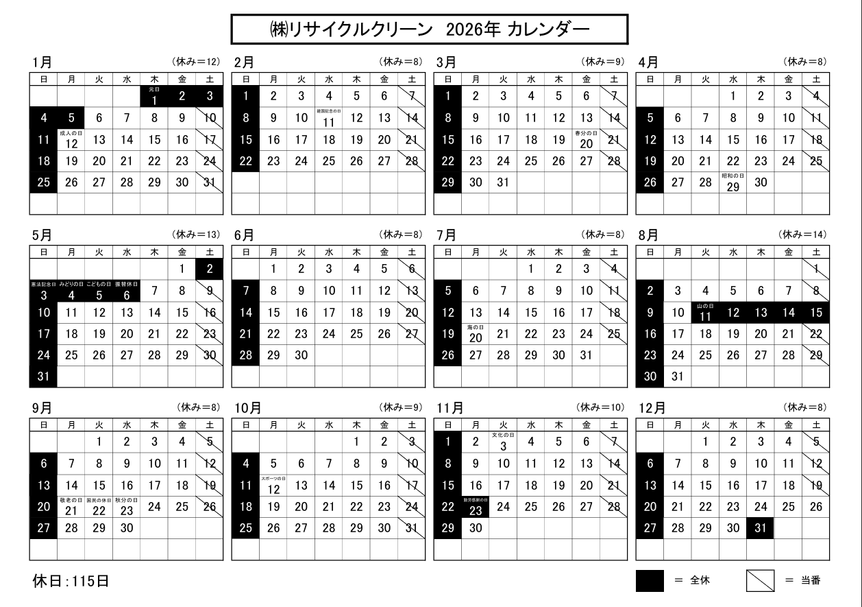 2026カレンダーPDFダウンロード