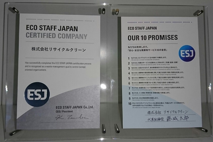 ESJ「エコスタッフジャパン」のCERTIFIED COMPANY(認証取得企業)になりました。