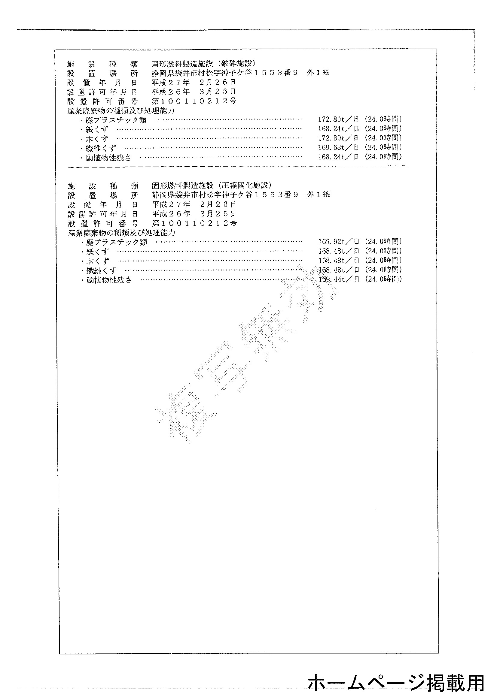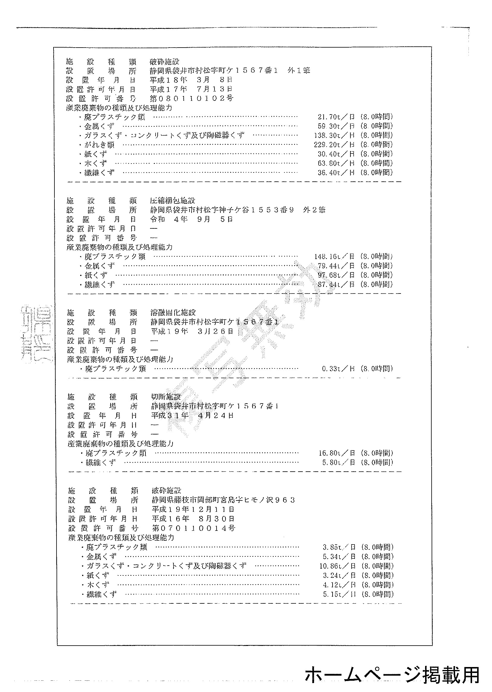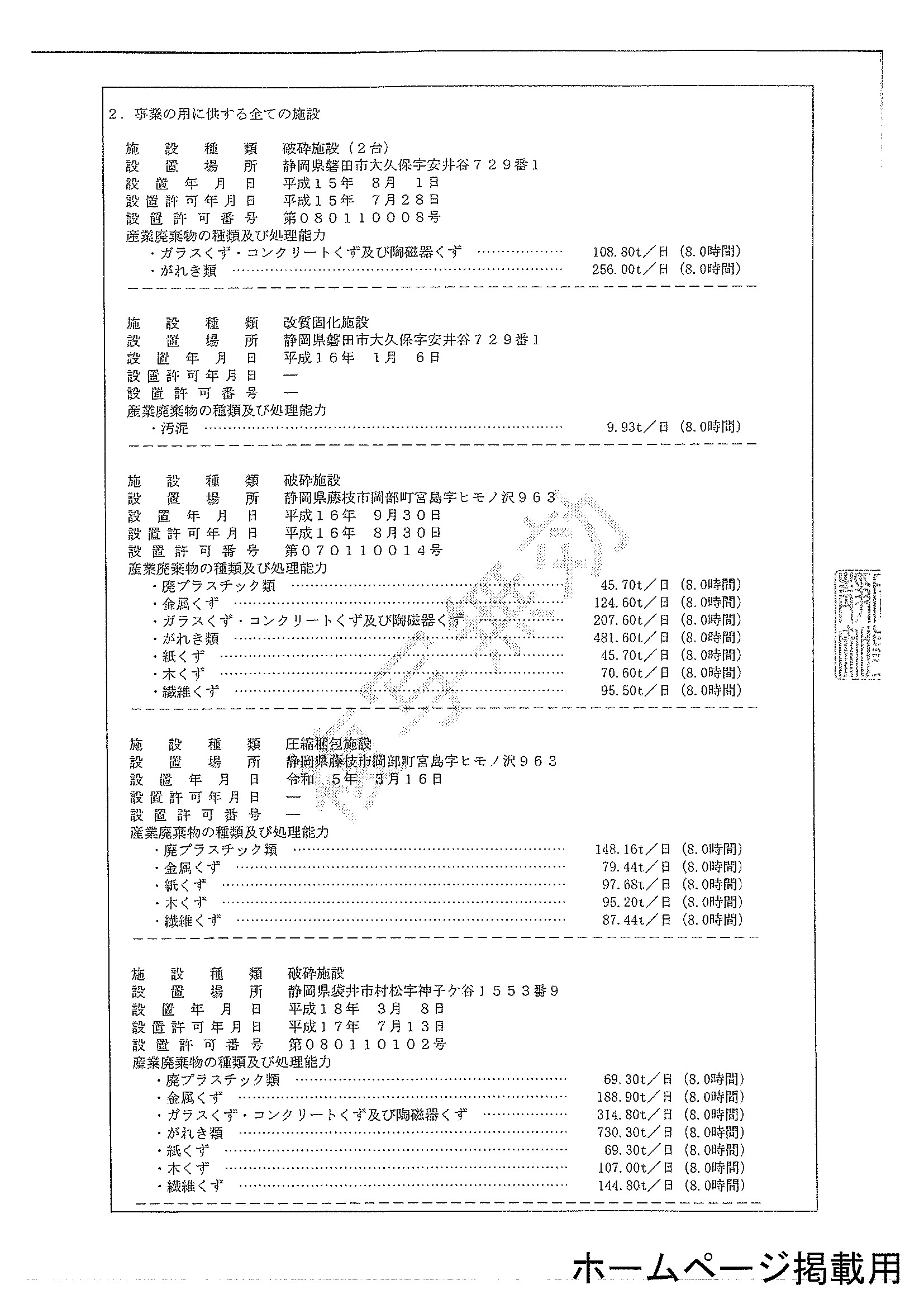 | ●産業廃棄物処分業 | 静岡県第02221000340号 浜松市第06321000340号 |