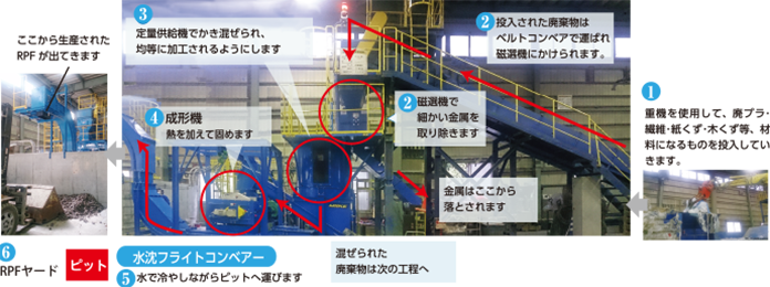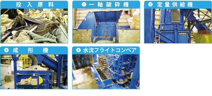 | 設備 | 選別機、破砕機(1軸)、溶融固化機(RPF)、圧縮梱包機、粉塵防止ミストシャワー |
