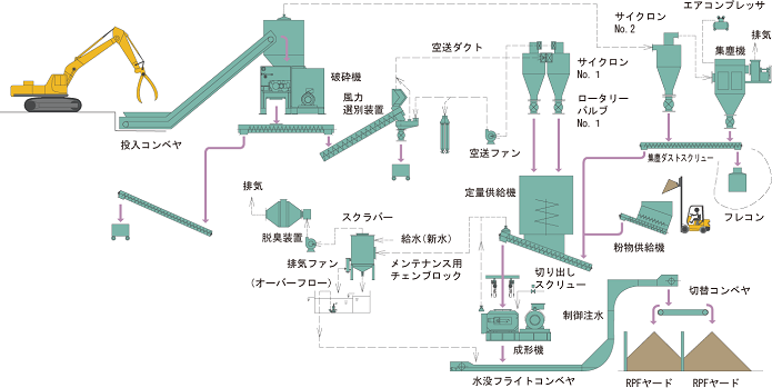 | 主業務 | 産業廃棄物の固形燃料化(RPF)、中間処理(破砕、破砕成形) |