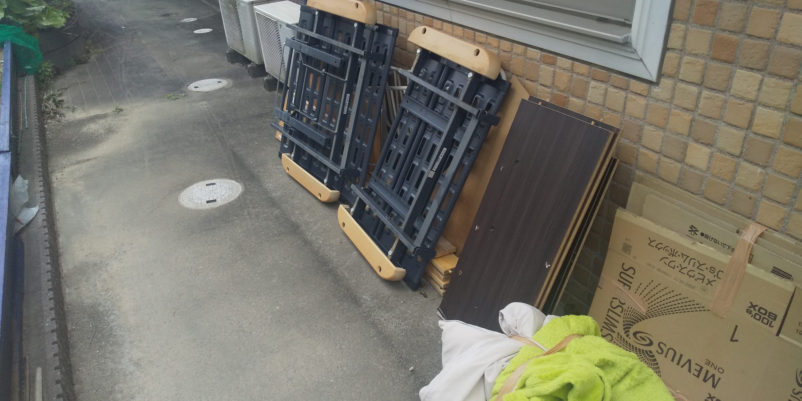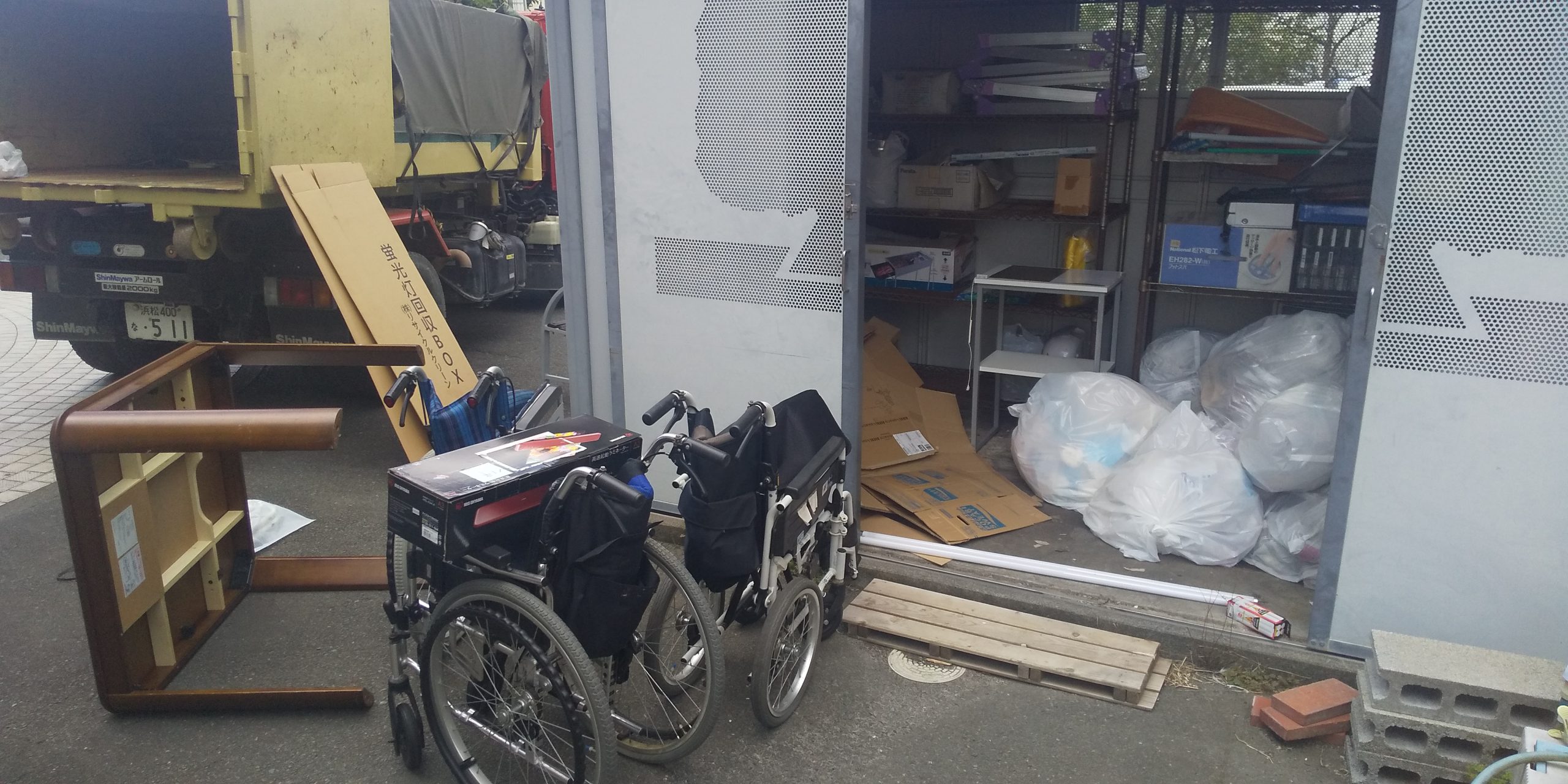 今回の廃棄物は、壊れてしまった備品類でした。車いす、棚、ベット等2t車1台ほどの量がありました。