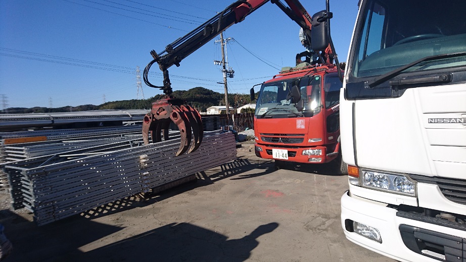 当社では爪(グラップル)付のローダークレーンを搭載した