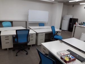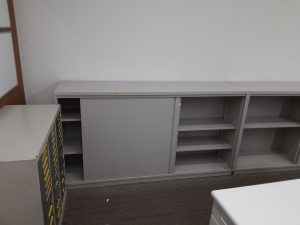 事務所内には処分予定の机椅子・ロッカーなどの様々な廃棄物がありました。
