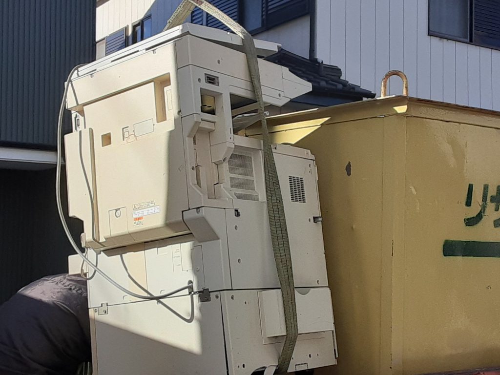 複合機等の大きく重い物もユニック車でロープを使用する事で回収が可能