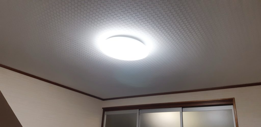 近所???の家電店に出向きました LED器具、選り取り見取りの数が並んでいました。まずは畳数で絞り、次にコストです。店員さんに値下げ交渉してGet。すぐに帰って取り付け、簡単でした。