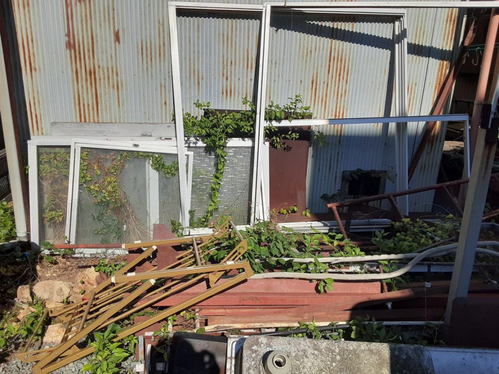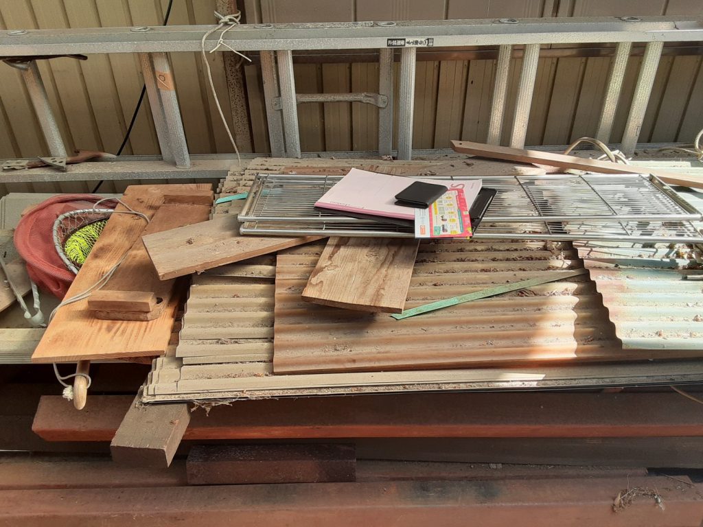 藤枝市某所にて自宅の庭に倉庫を作った際に余った不用品の下見を行いました。