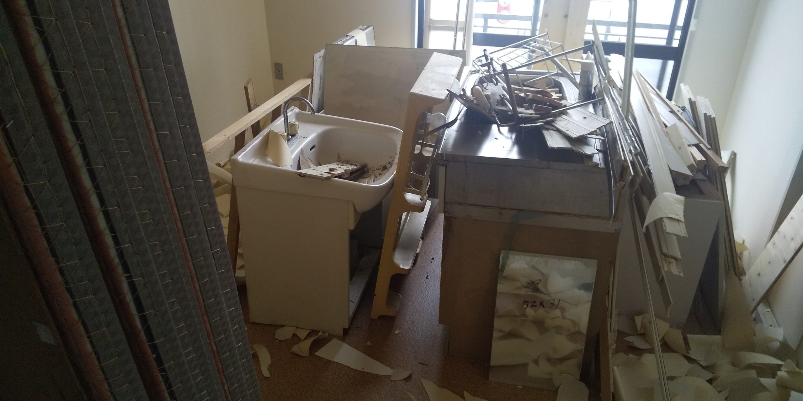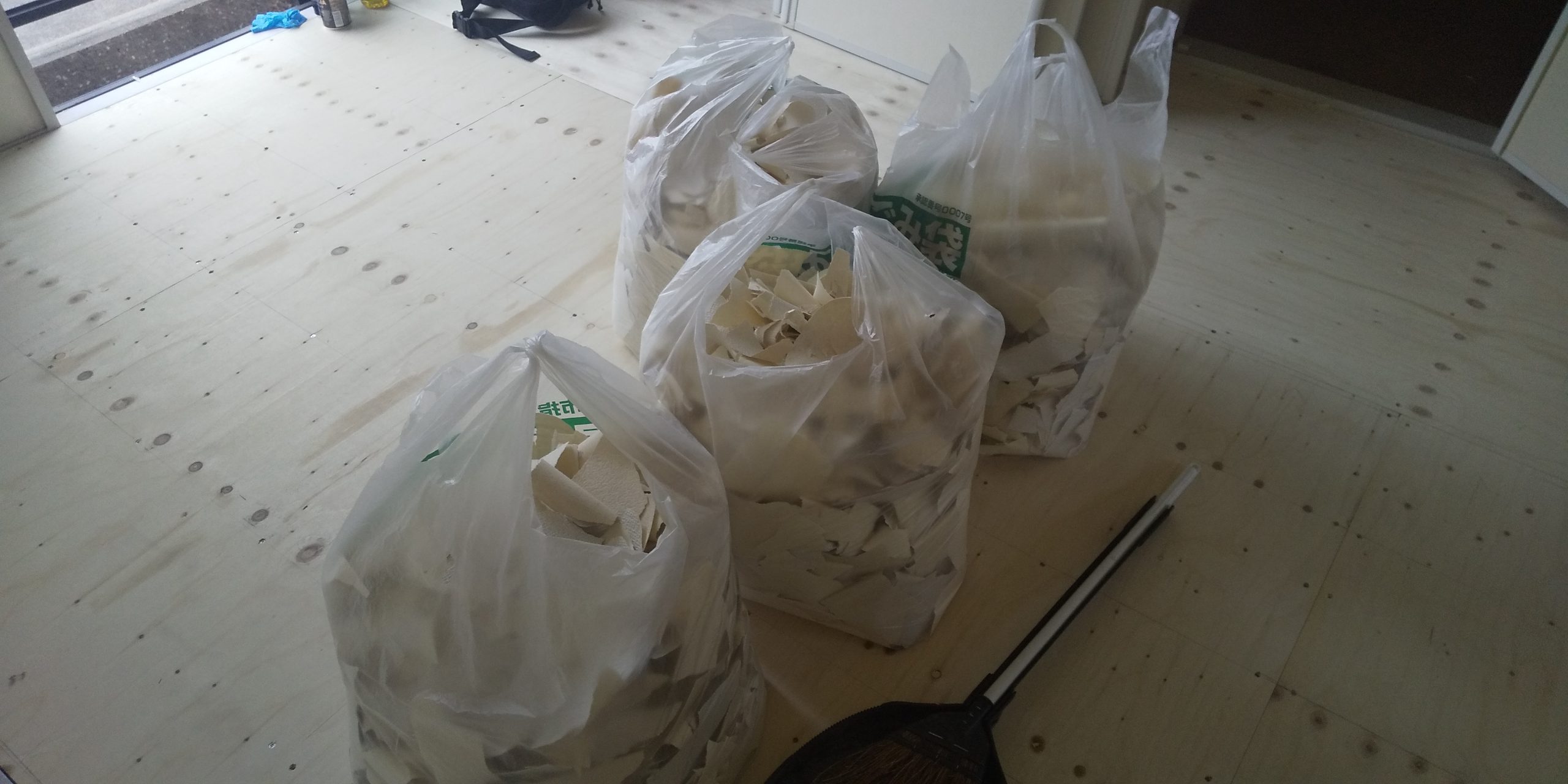 まずは、回収する廃棄物を確認して処理できない物があるか確認をします。今回の廃棄物の中には特に問題となるものはありませんでした。アパート内のリフォーム廃材でした。
