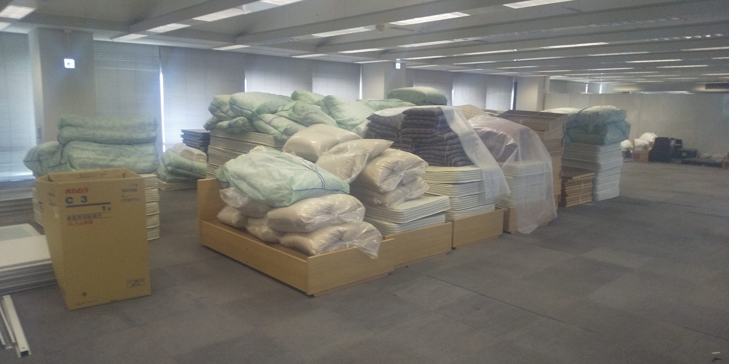 以前工場内にパーテーションで区切られた宿泊用に部屋をなくしてリフォームするそうです。その際に、いらなくなったベットとパーテーションを処理して欲しいとの事でした。