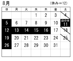 8月11日(土曜日)から8月16日(木曜日)までは、お休みになります。