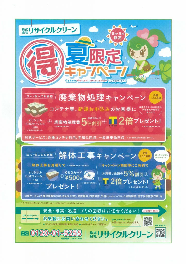 キャンペーン詳細はリサイクルクリーンホームページでも公開致します。