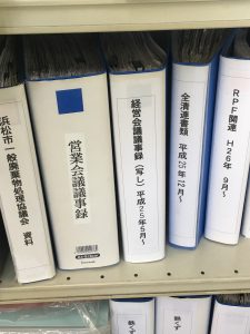 ちなみに提出された原本は、本社の別の場所に置かれている棚にあります。こちらには教育訓練をはじめとした、様々な記録書類が保管されています。