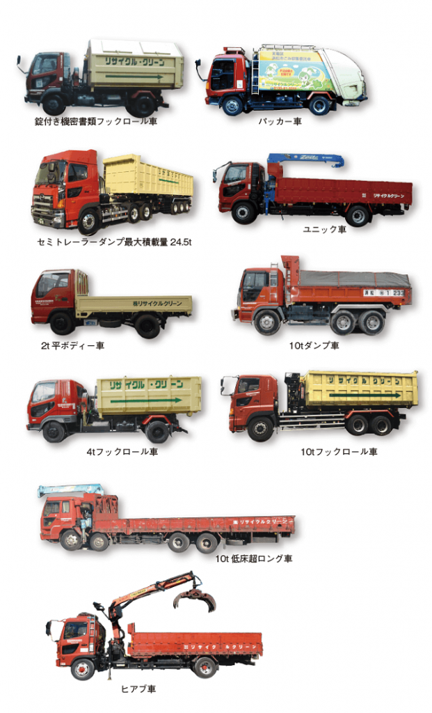 弊社にはユニック車以外にもフックロール車などの約120台の車両があり、多様なニーズにお応えすることができます。