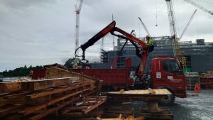 しかし、フックロールに入るサイズではなく、重機で細かくし入れる時間も