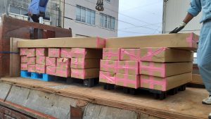 弊社で用意した蛍光灯段ボール28箱分。1箱につき約40本入りますので約1100本の蛍光灯を回収した計算となります。