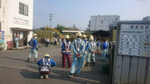 リサイクルクリーンの一週間は、社長を筆頭に各部門が参加する全体朝礼で始まります。