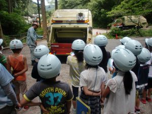 ごみ収集車の仕組みも、工場長に特別に教えて頂きました。