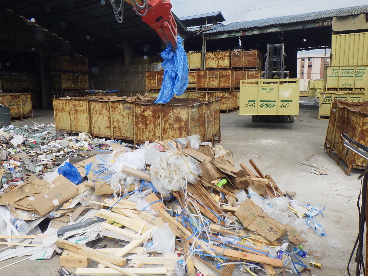 この後、破砕等の中間処理を行いRPF材料となるものは袋井工場へ、
