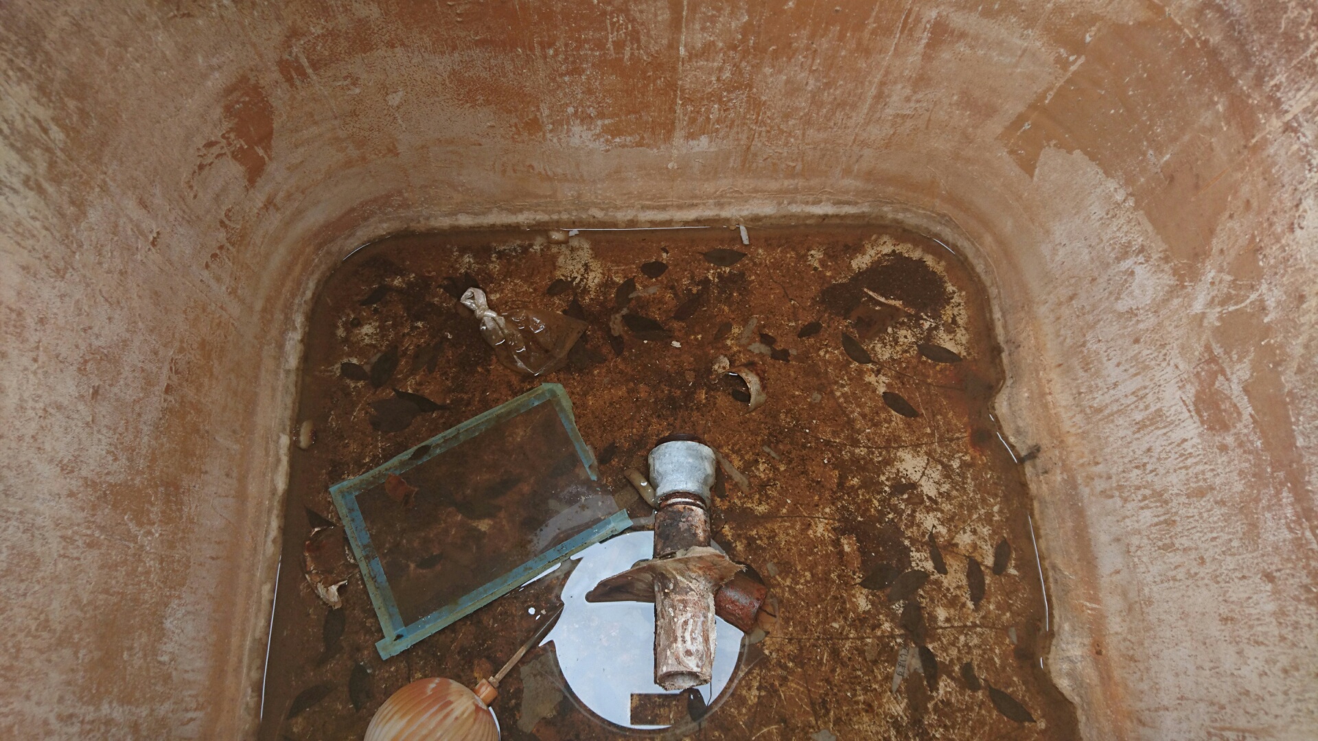 今回は設備自体が何年も前から使用していなくて、中身は残っていませんでした。もしも中身が、残っている場合は、何かを確認して抜き取る作業が必要となります。