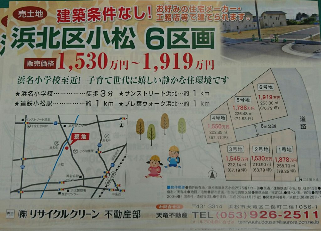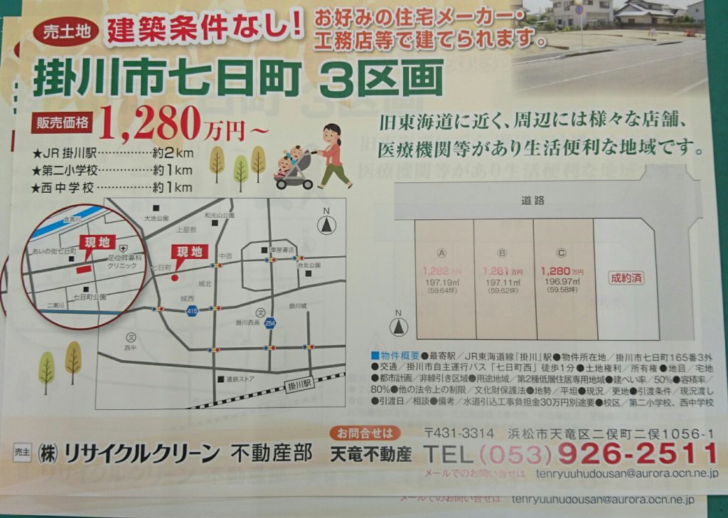 現在、浜北区と掛川市で、土地の情報がありますので、掲載させていただきます。