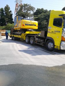 先導車と運搬車両の後尾には安全確認の為の車両がつき