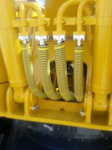 ふるガードつき、油圧配管には破損時に作動油が飛散しないように