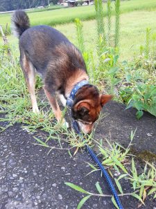 散歩中の得意技です、地面の臭いを確認し・・・・タイムです