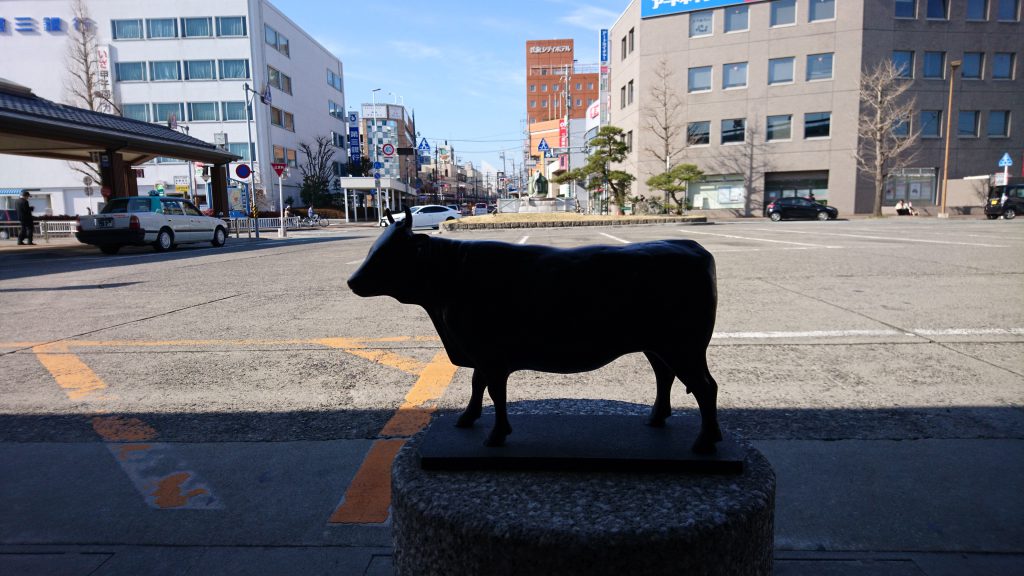 初めて訪れた松坂駅前には、やはり松坂牛の町だけあって牛さんの像が・・・さて大きさはいかほどでしょう。