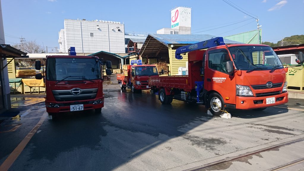 本日、日野自動車さんからユニック車3台納車されました(4t車・大型車)、待ちました半年近くです