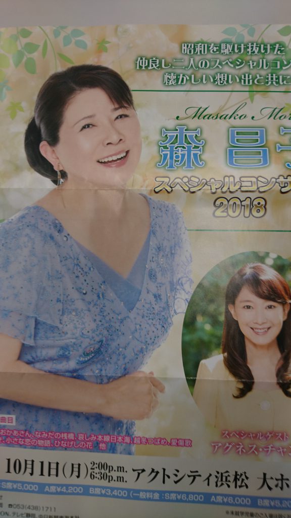先日アクトシテイ浜松大ホールにて開催された森昌子コンサートに行ってきました