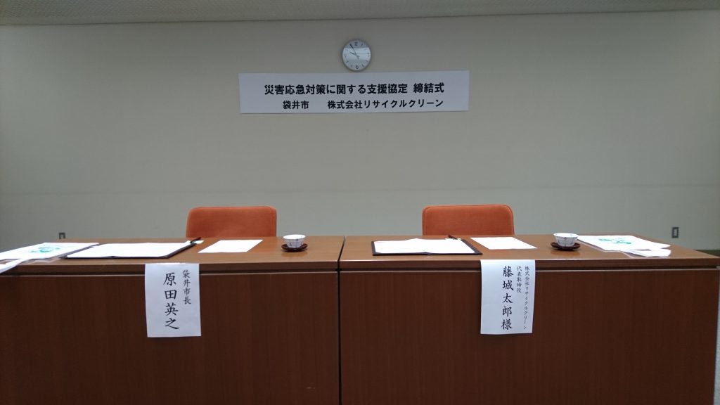 皆さんは既に新聞紙面や弊社ホームページ等でご承知おきと思いますが去る1月16日袋井市役所において㈱リサイクルクリーンと袋井市が災害応急対策に関する支援協定締結式が行われました。