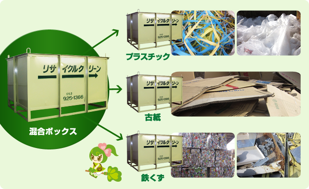 | 混合廃棄物 | 分別後各品目にて破砕 70%リサイクル |