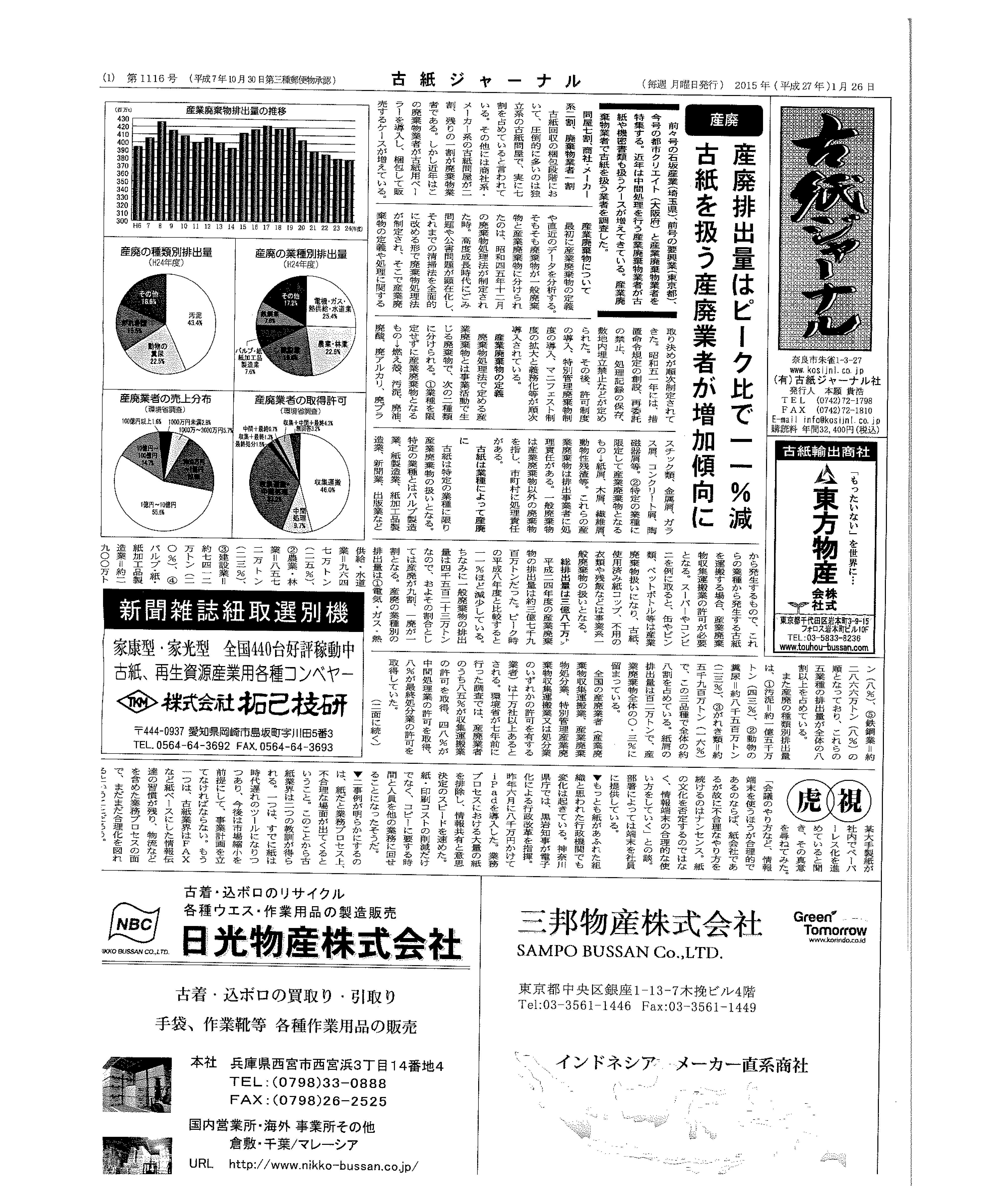(1/26)古紙ジャーナルに記事が掲載されました。