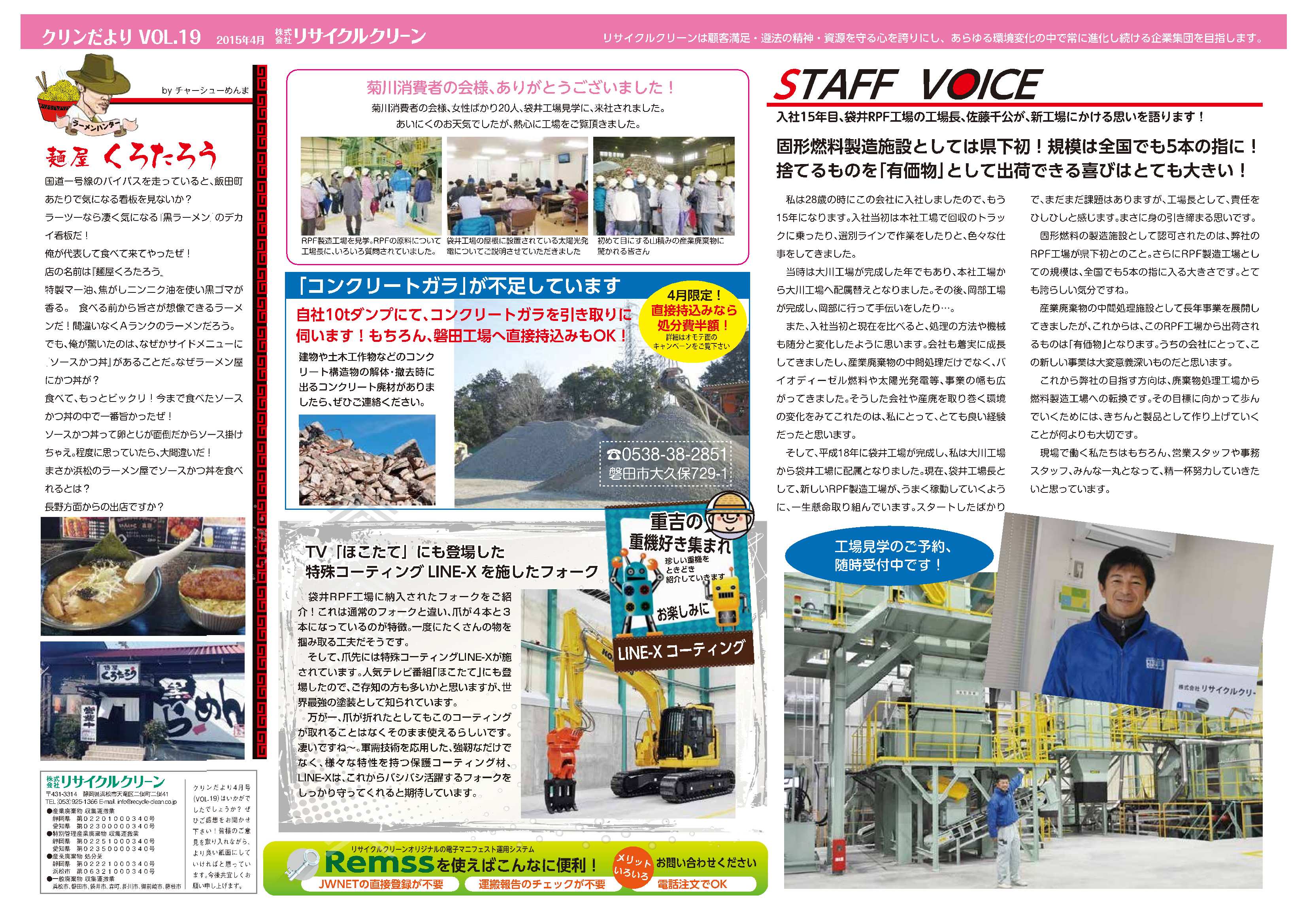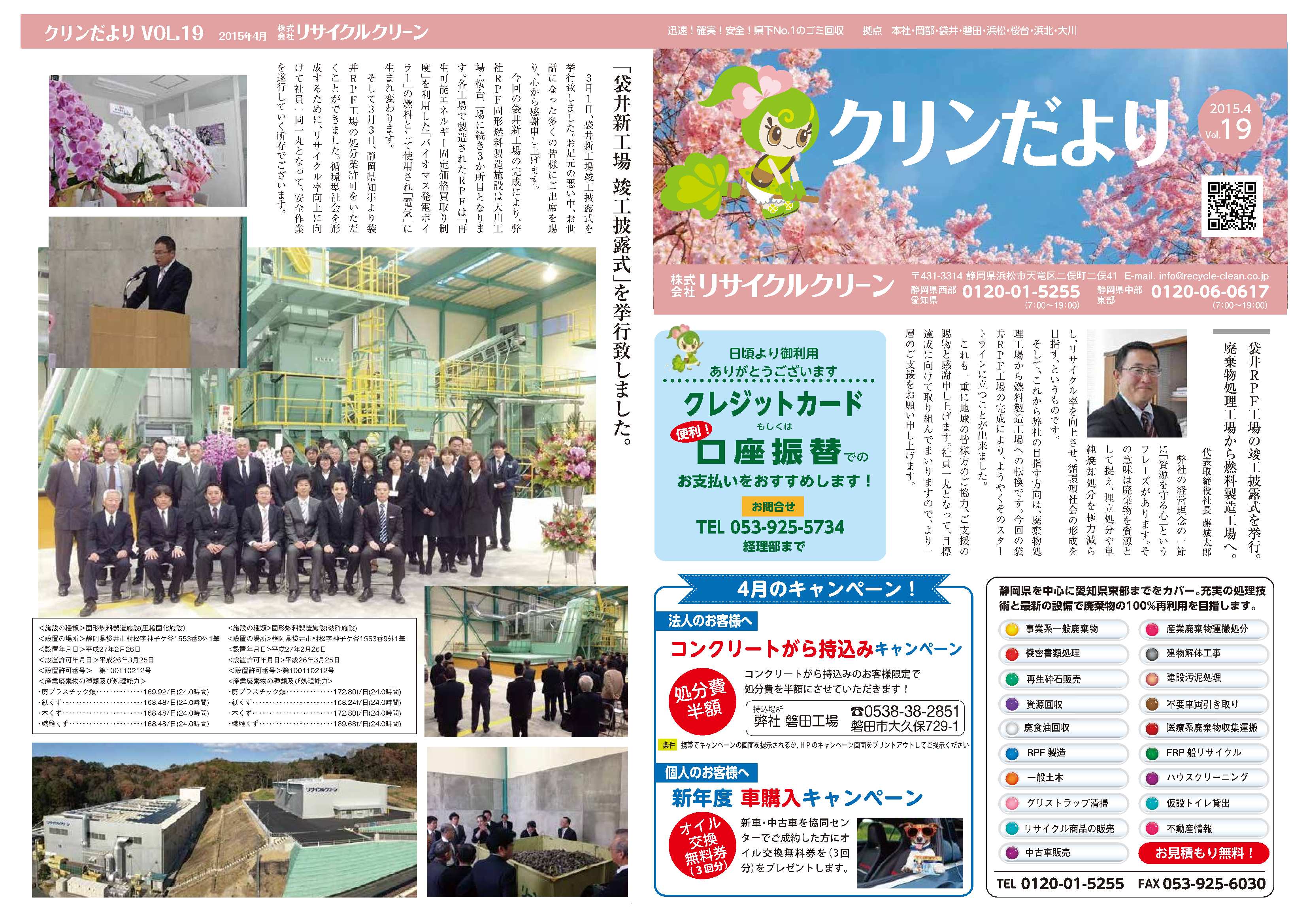 (4/1)クリンだより4月号(vol.19)発行されました。
