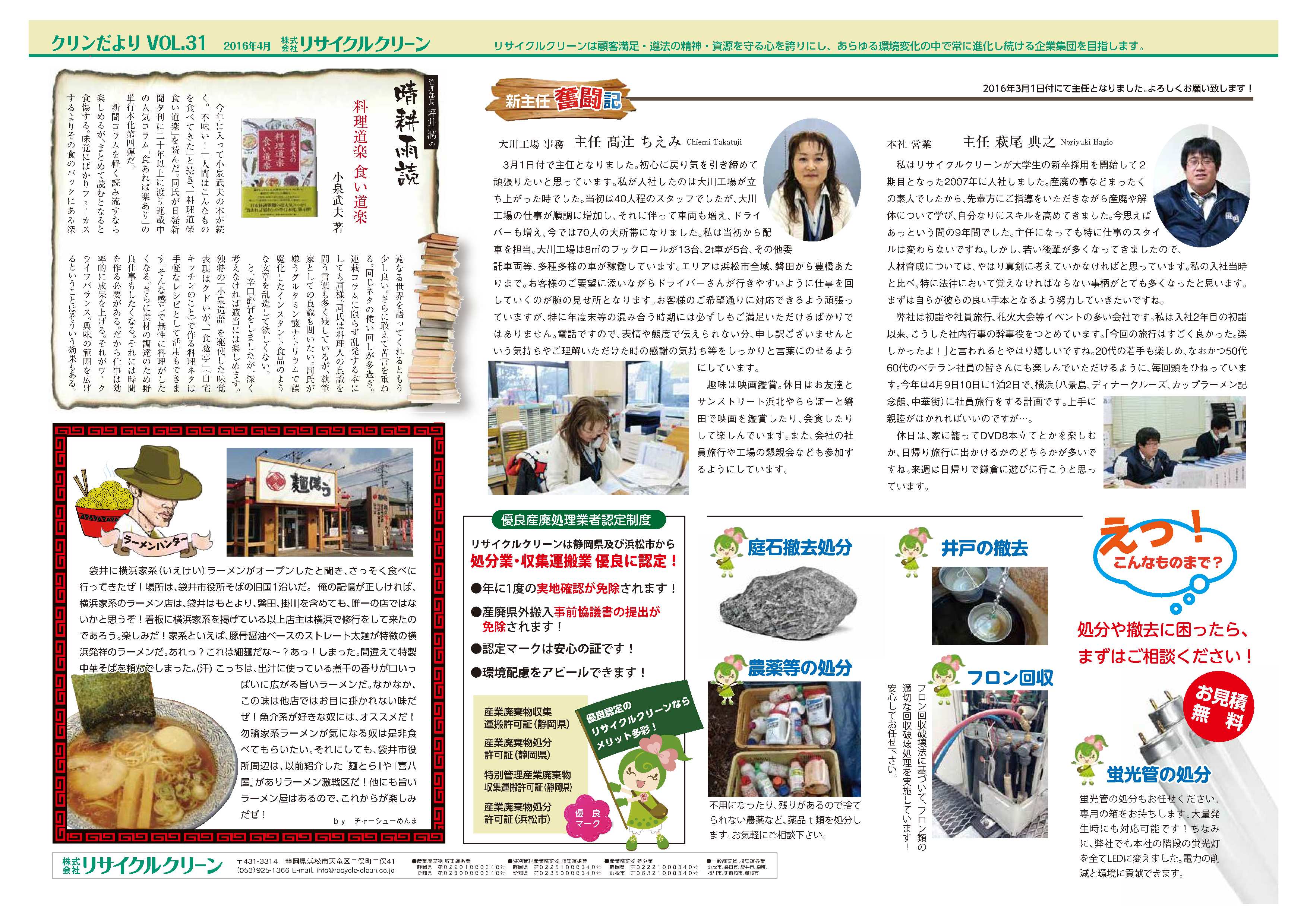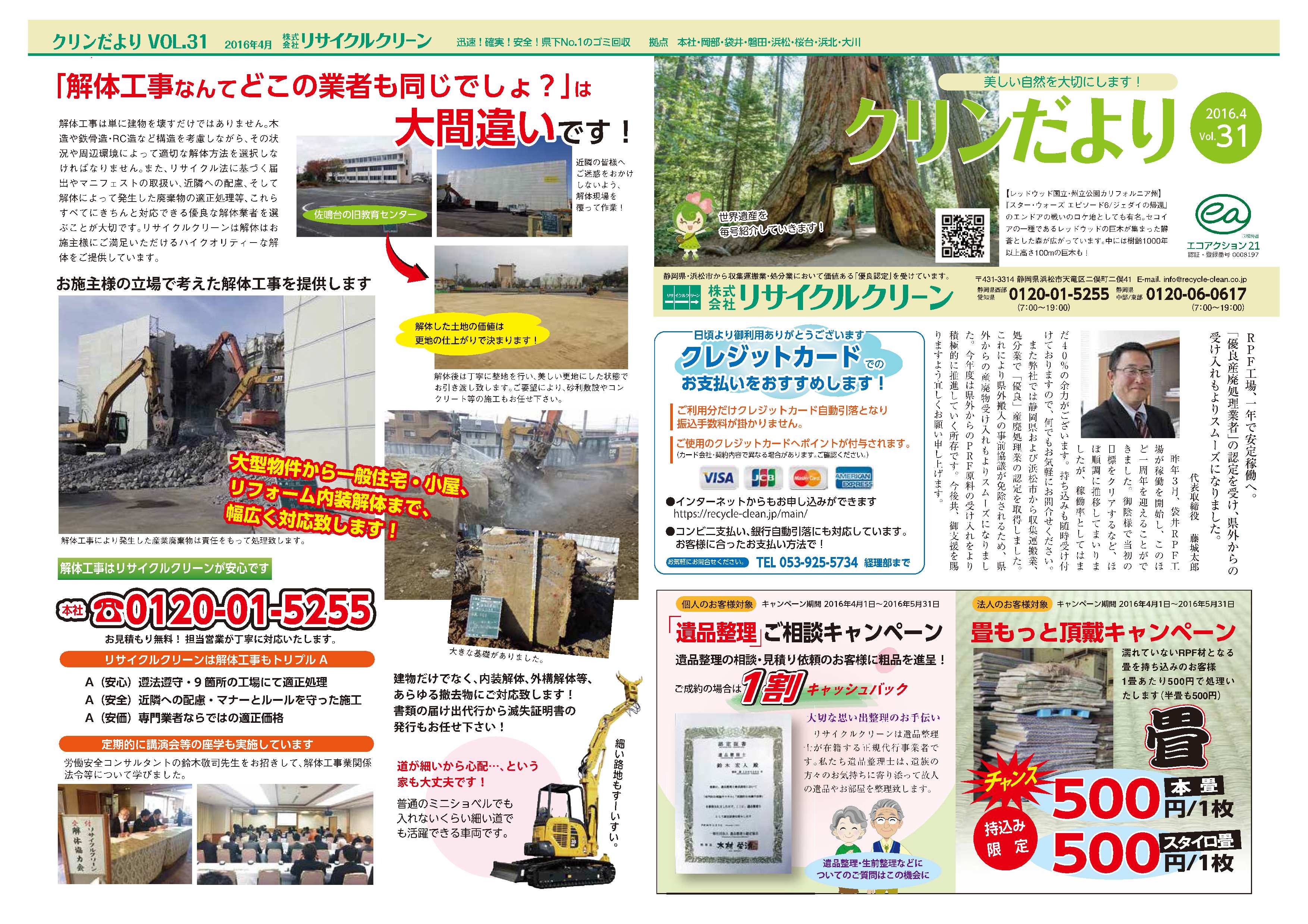 (3/31) クリンだより4月号(Vol31)が4/1に発行されます。是非ご覧ください