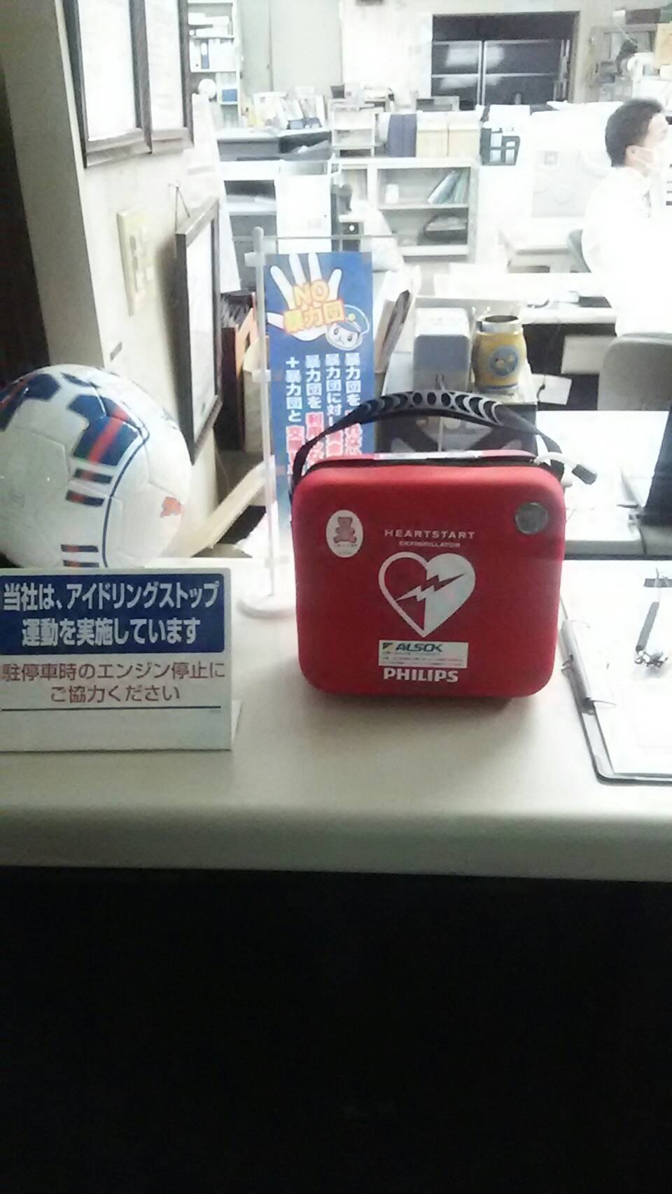 本日より、AEDを7台工場に設置しました。緊急時に備えて設置しました。