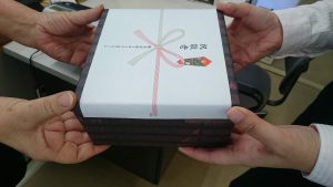 本日9月18日は「敬老の日」ということで、60歳以上の社員の皆様に、感謝の気持ち入りの「バームクーヘン」がプレゼントされました。