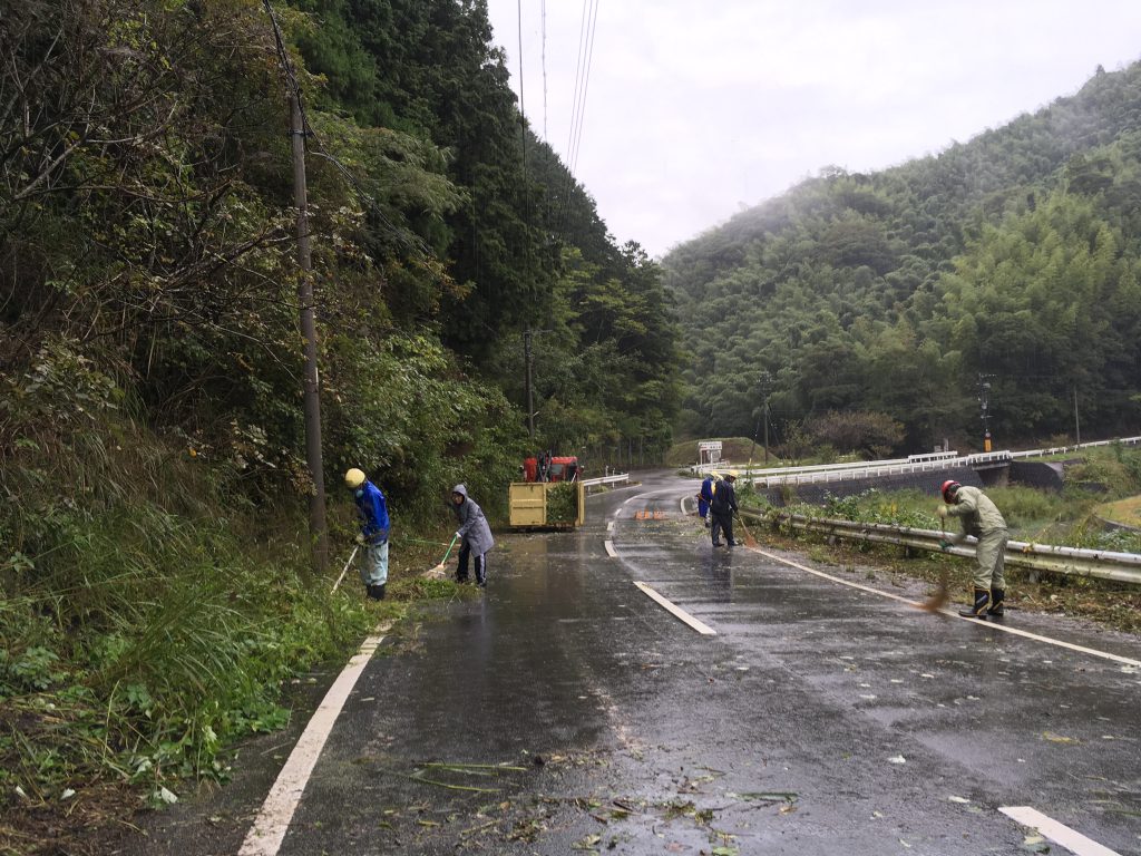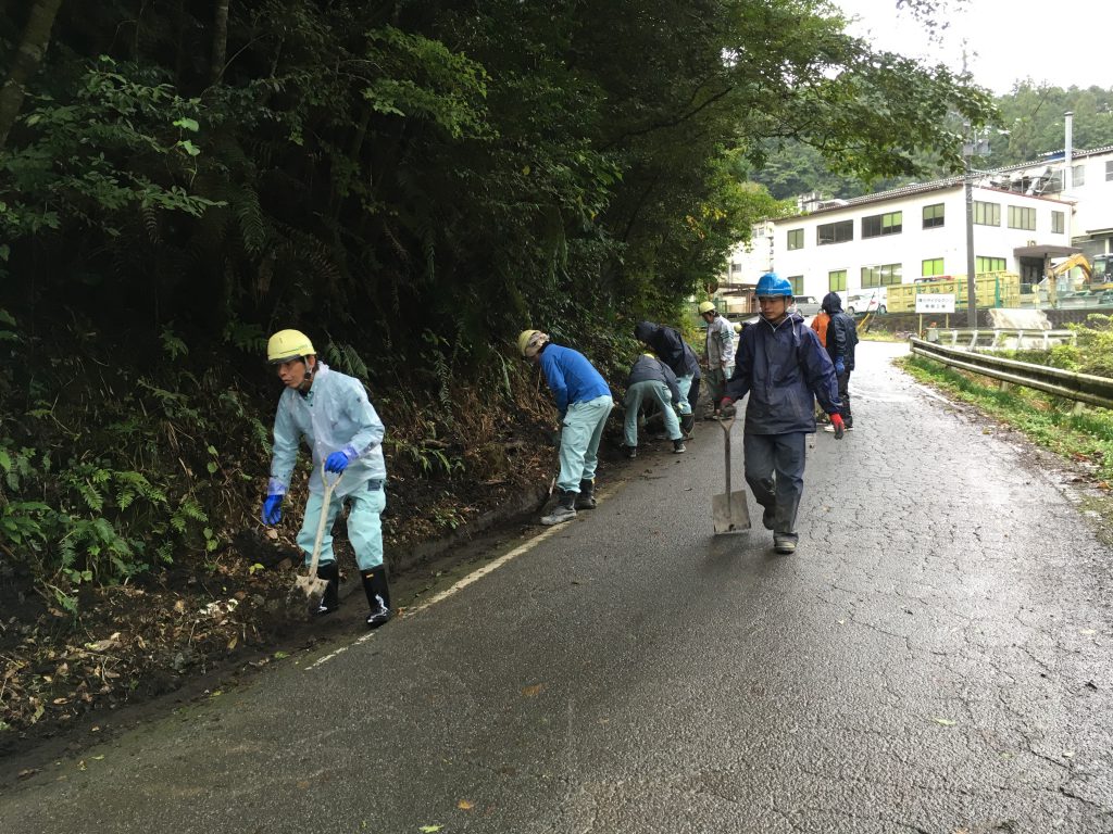 10月21日(土)台風急接近の悪天候の中、リサイクルクリーン岡部工場周辺道路の清掃活動を行いました。