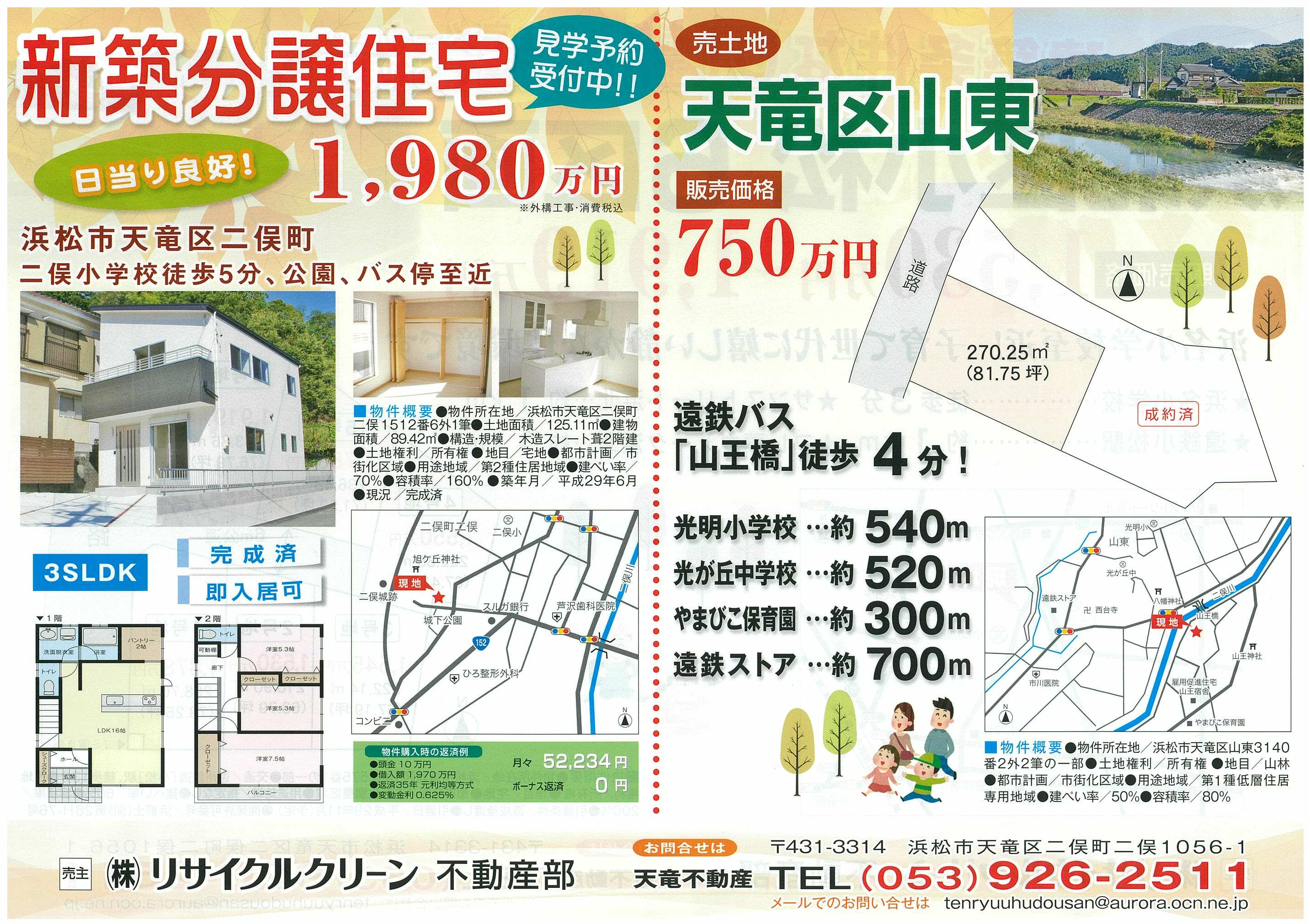 天竜不動産より 本日の新聞折込広告です【11月9日】