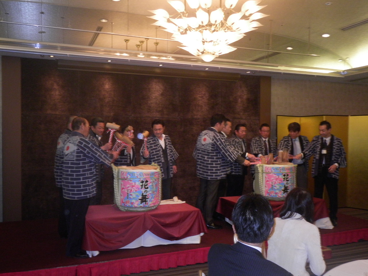 協力会の役員の方々と弊社役員による「鏡割り」の風景です。