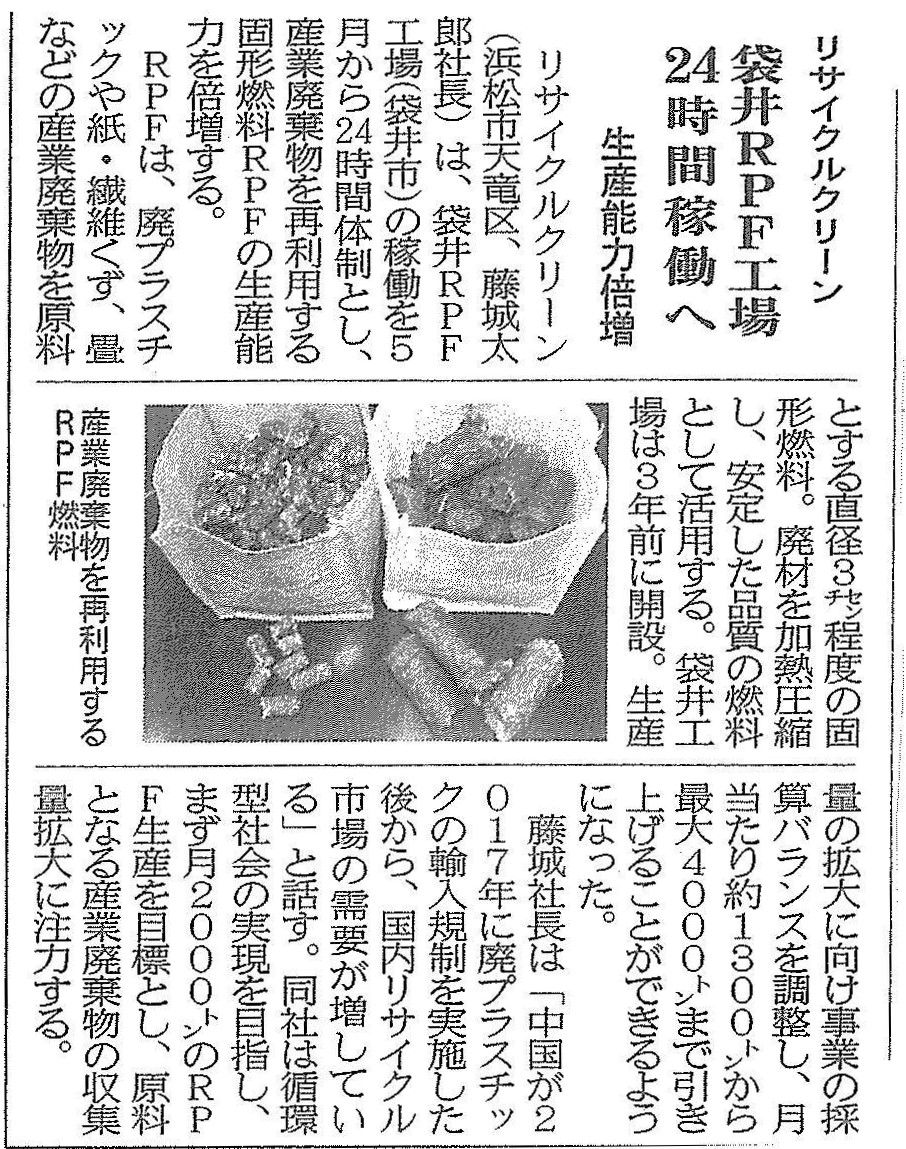 (株)リサイクルクリーンRPF中国2017廃プラスチック類建通新聞静岡県