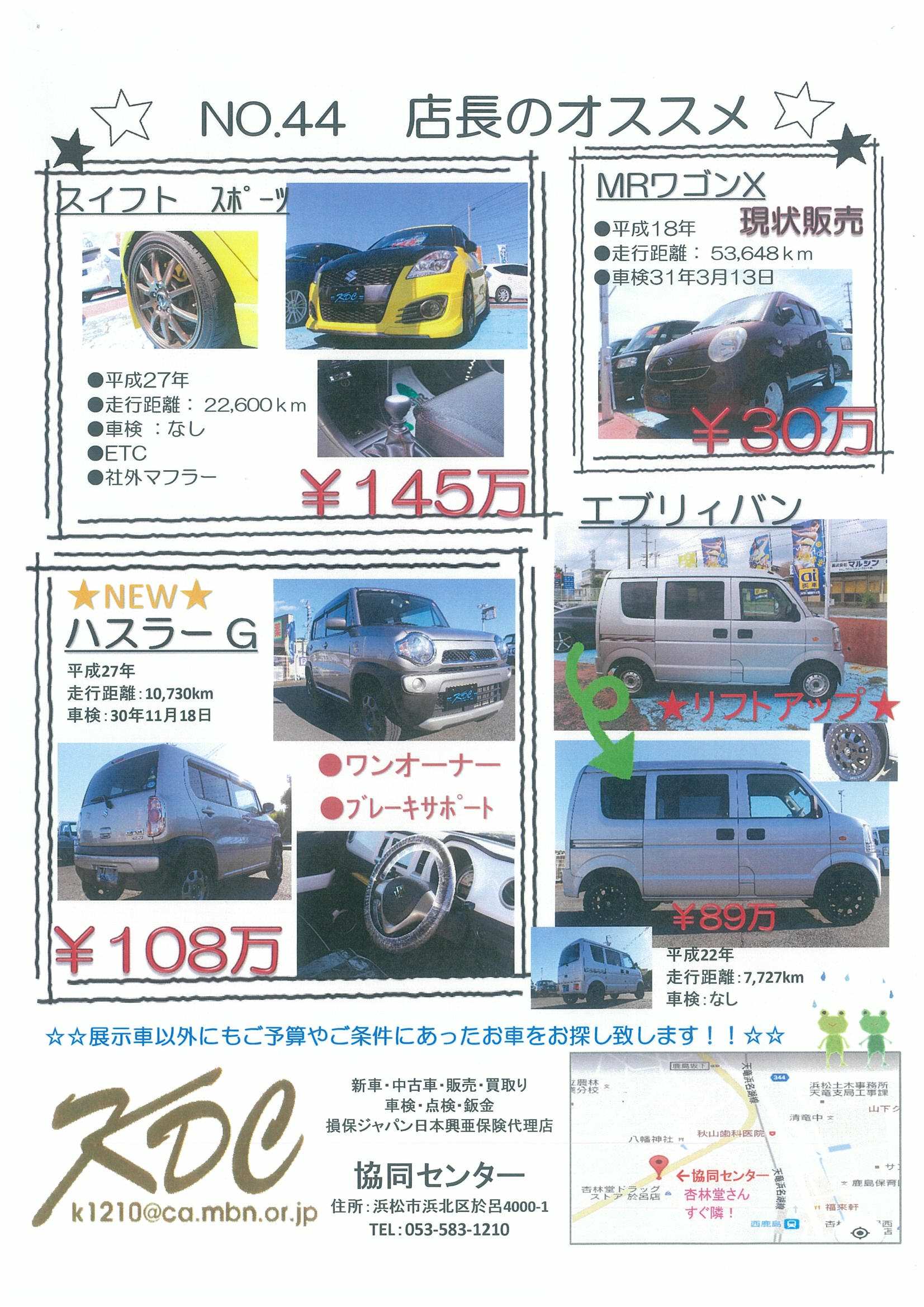 新着 店長のおすすめ中古車情報No.44 by協同センター