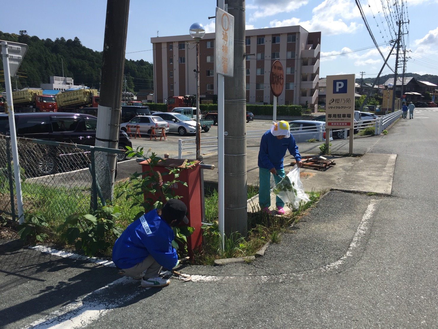 近隣道路のゴミの片づけ、雑草の処理をしました。