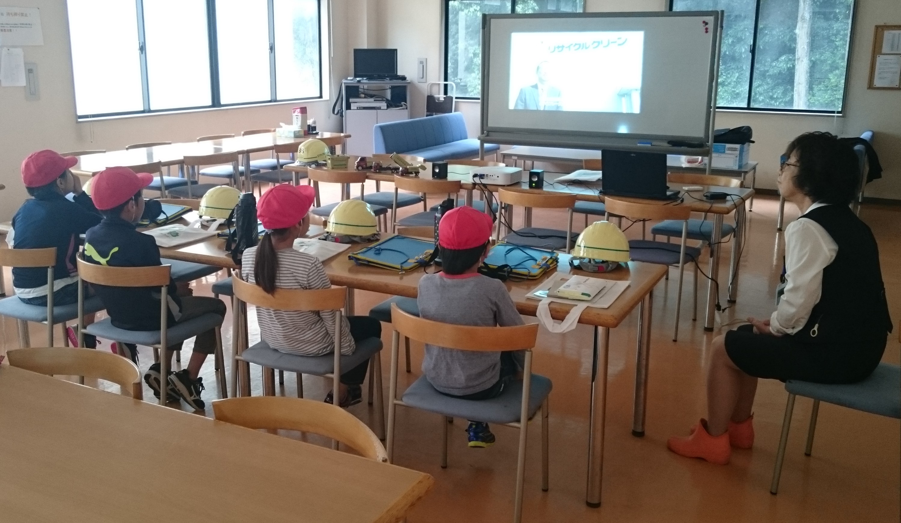 はじめに、(株)リサイクルクリーンの工場案内のDVDを見てもらいました。