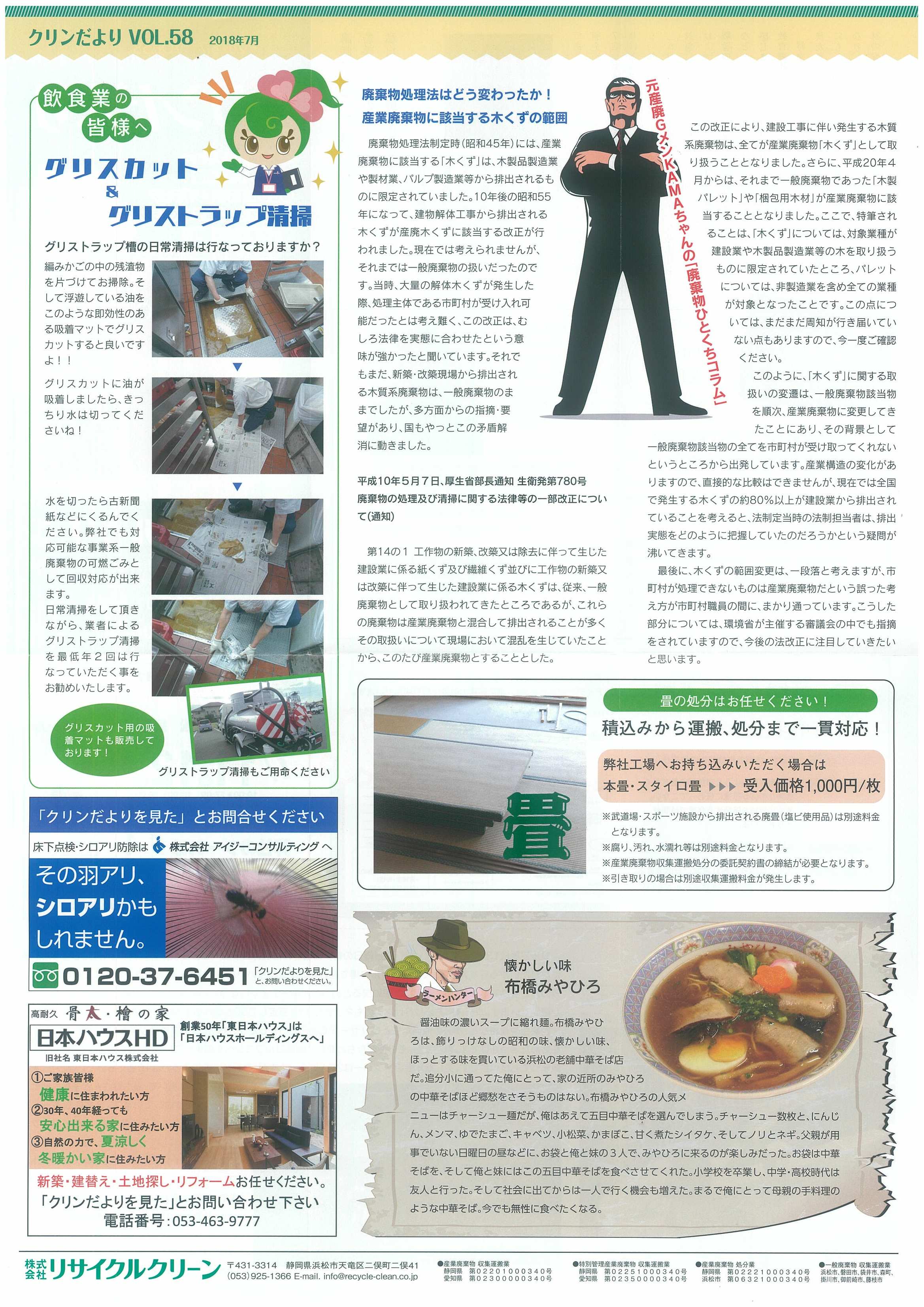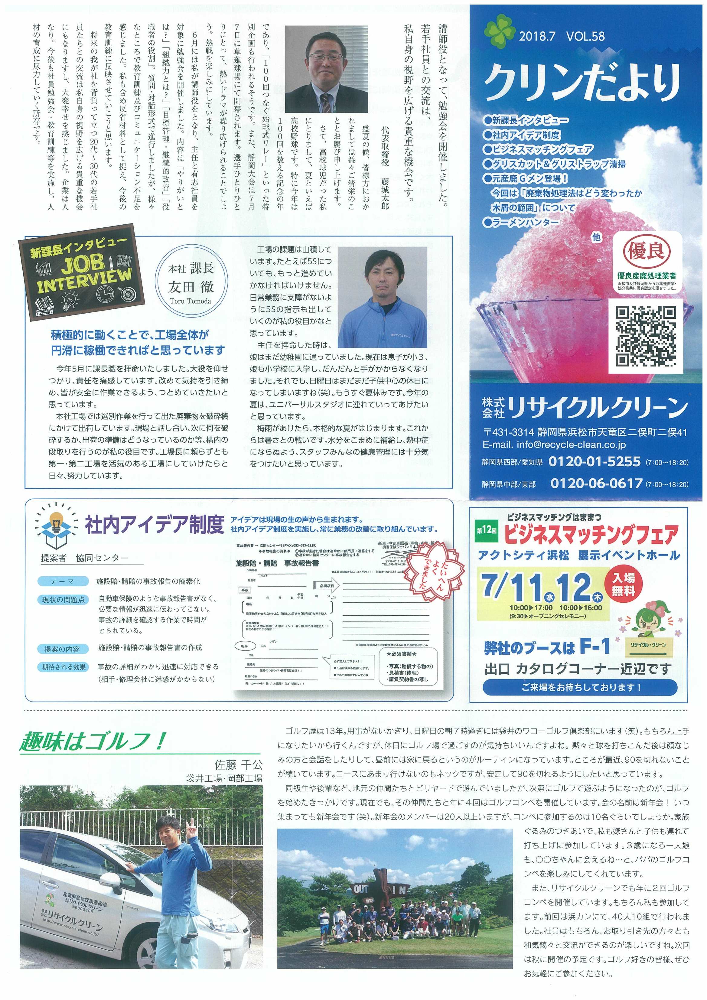 株式会社リサイクルクリーンの月例リーフレット「クリンだより VOL.58」を発行しました。