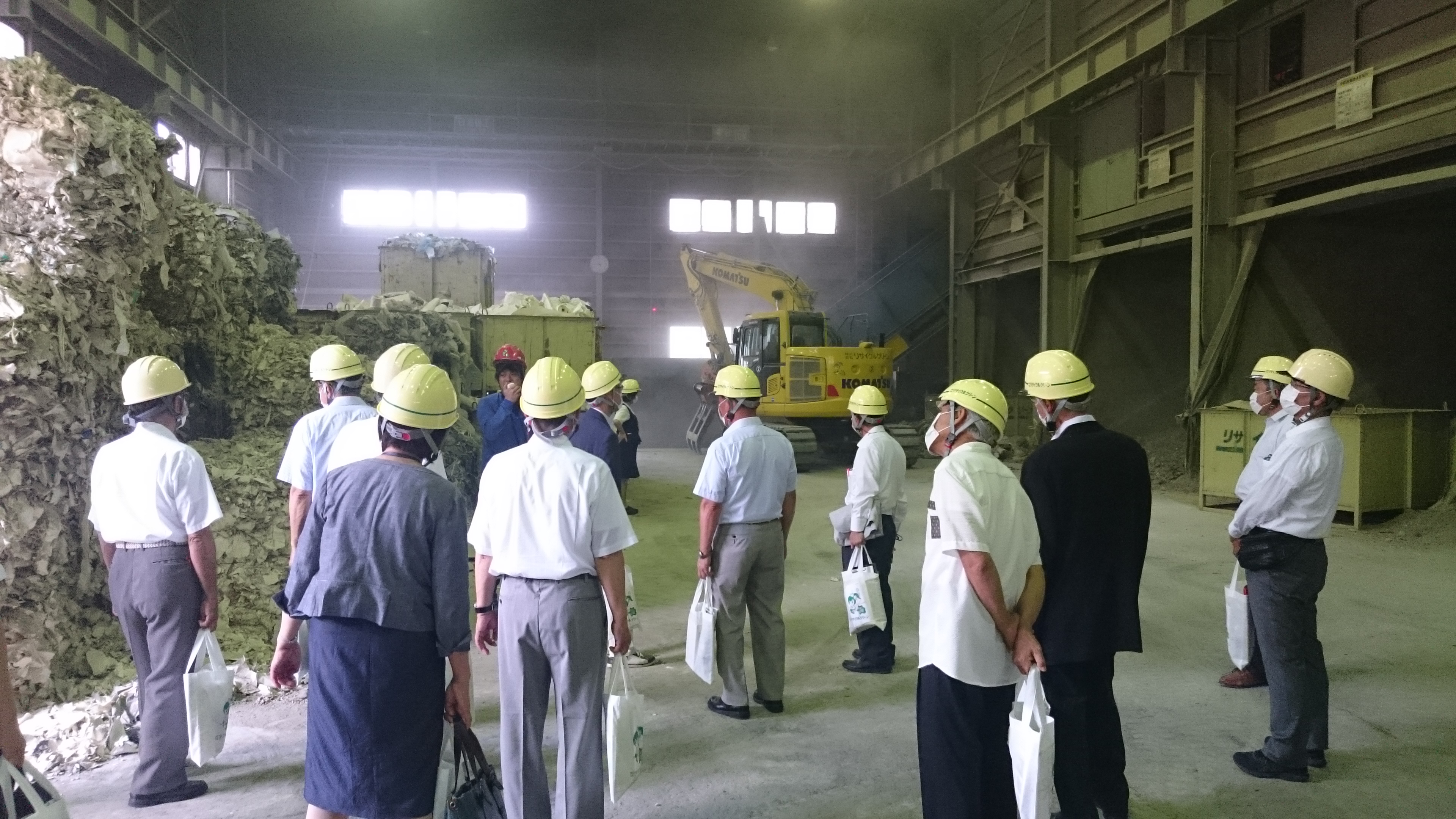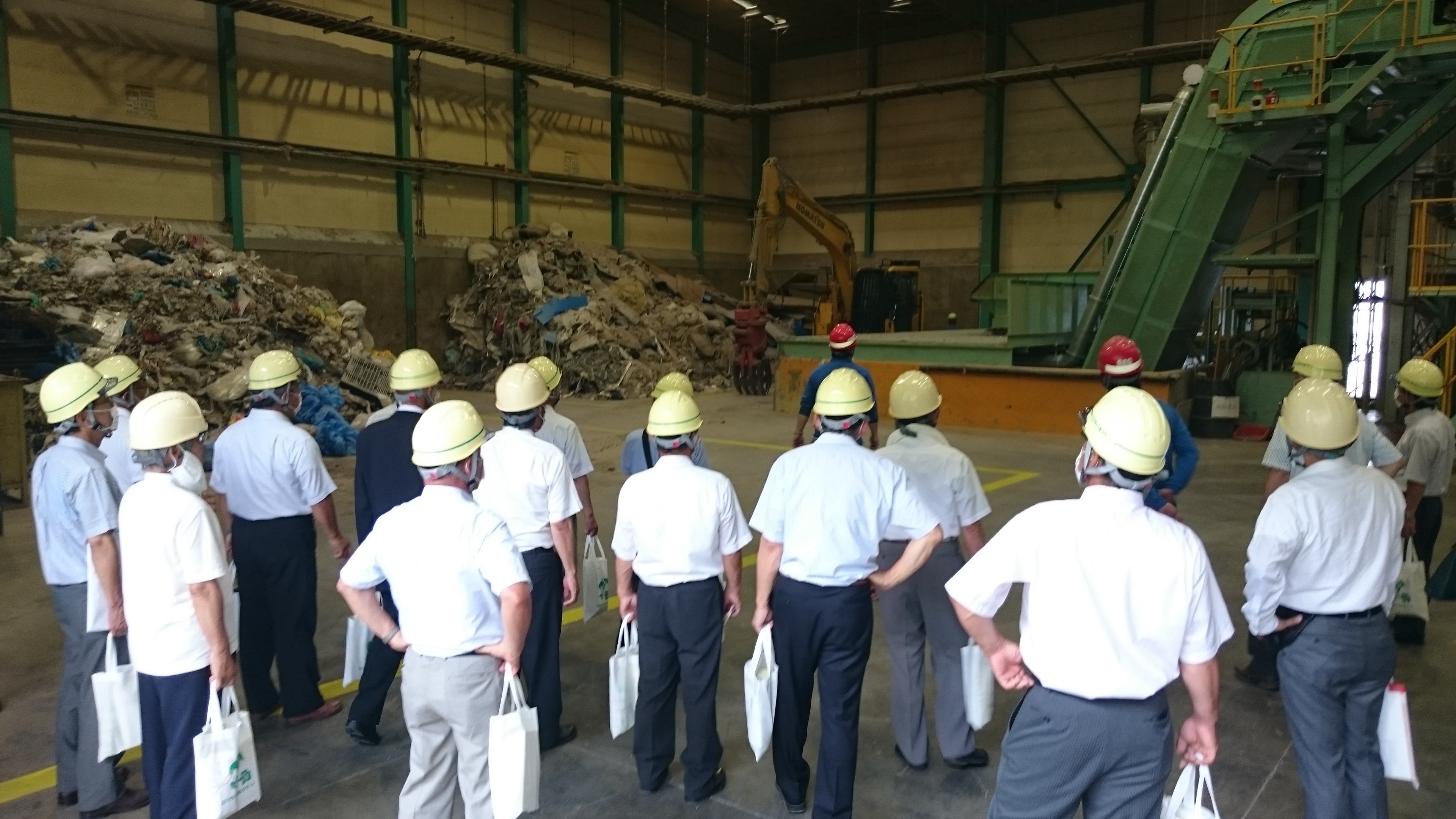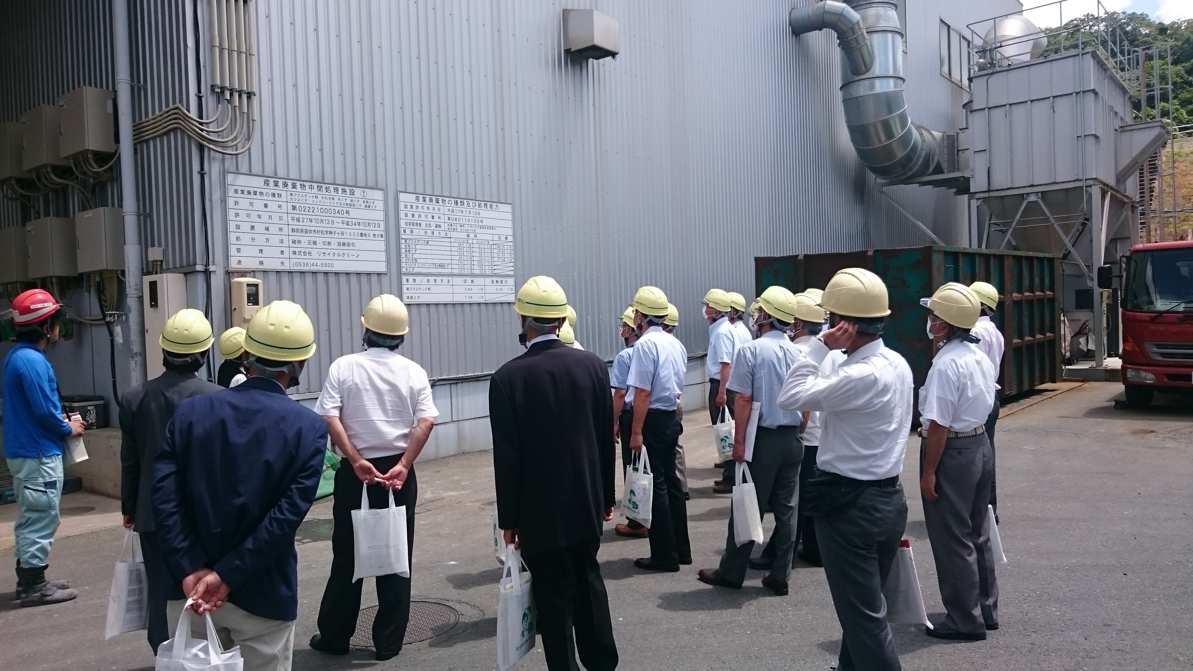真夏日の袋井工場、袋井RPF工場の見学となってしましました。暑い中、坂を上っていただきありがとうございます。また、神谷信行美浜町長にお運びいただけたこと、大変光栄に思っております。愛知県美浜町区長会の皆様、誠にありがとうございました。