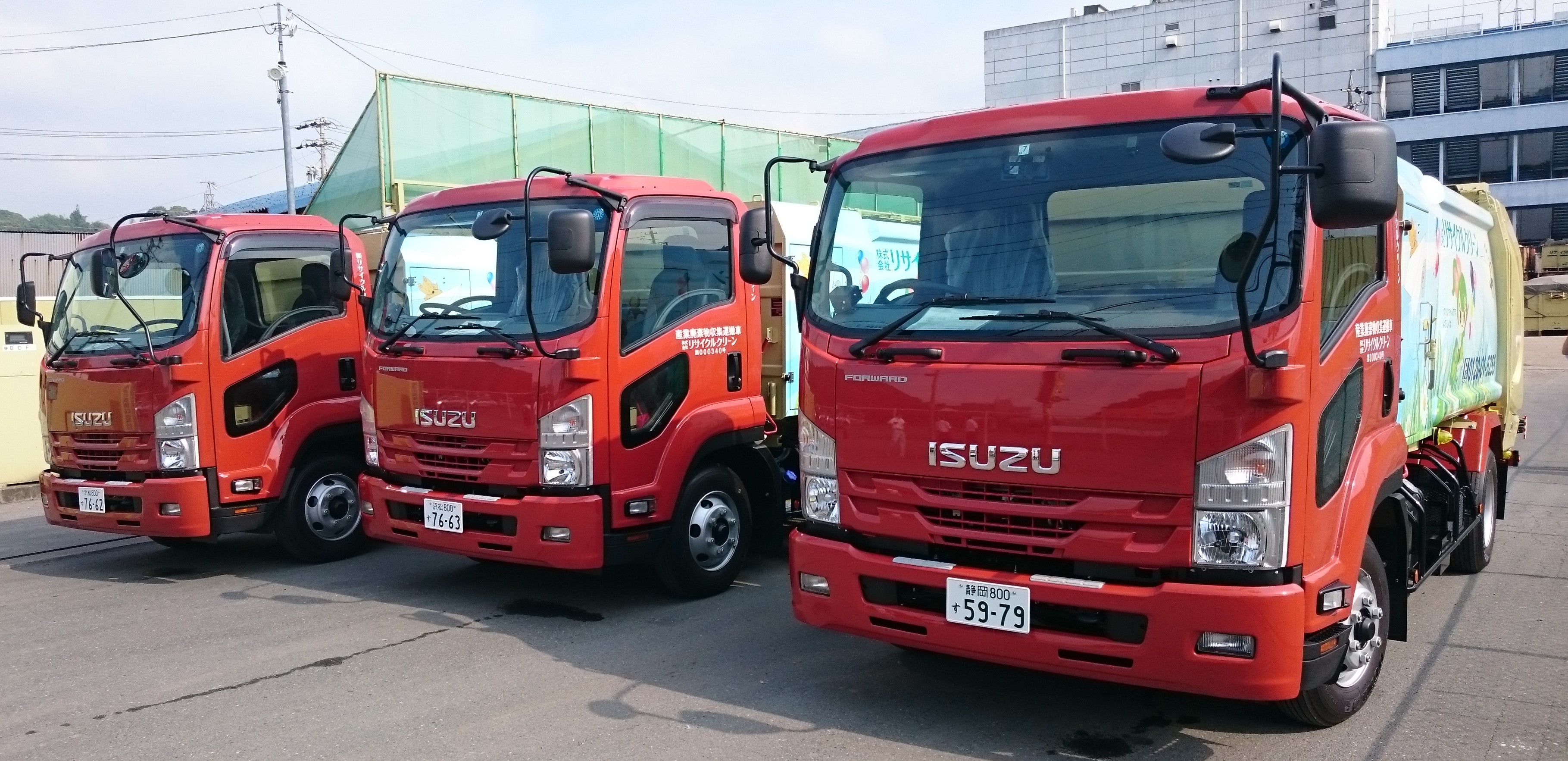 (株)リサイクルクリーンでは、より安全性の高い車を用意して町の美化に貢献してゆきたいと考えています、そして、皆様の町で、より信頼される仕事をしてゆきたいと思っています。今後とも、(株)リサイクルクリーンのゴミ収集車をよろしくお願い致します。