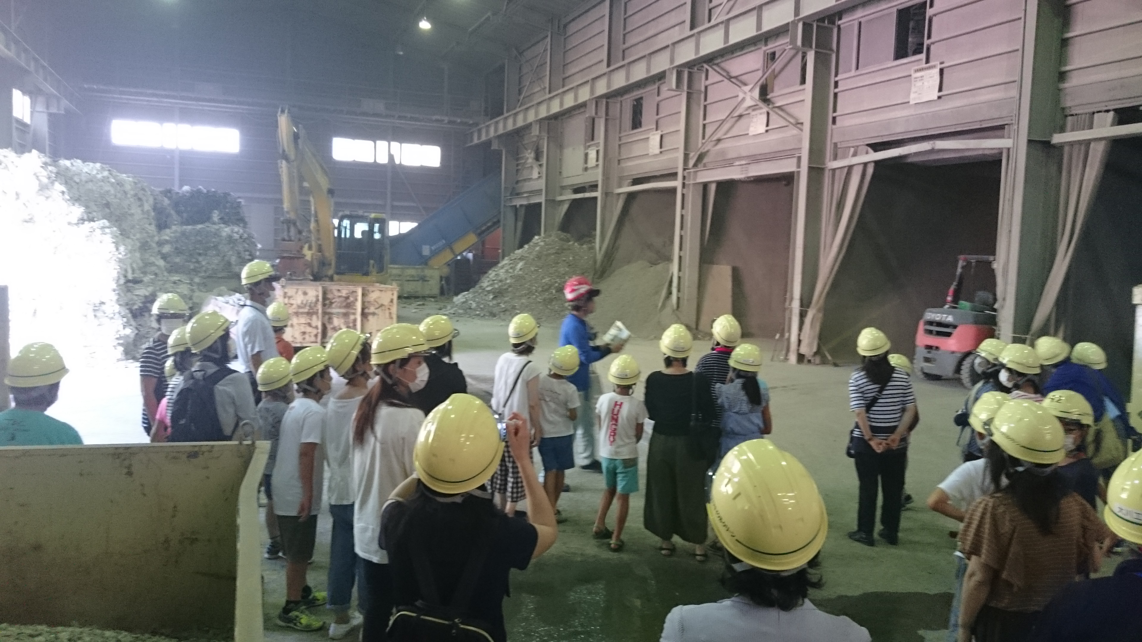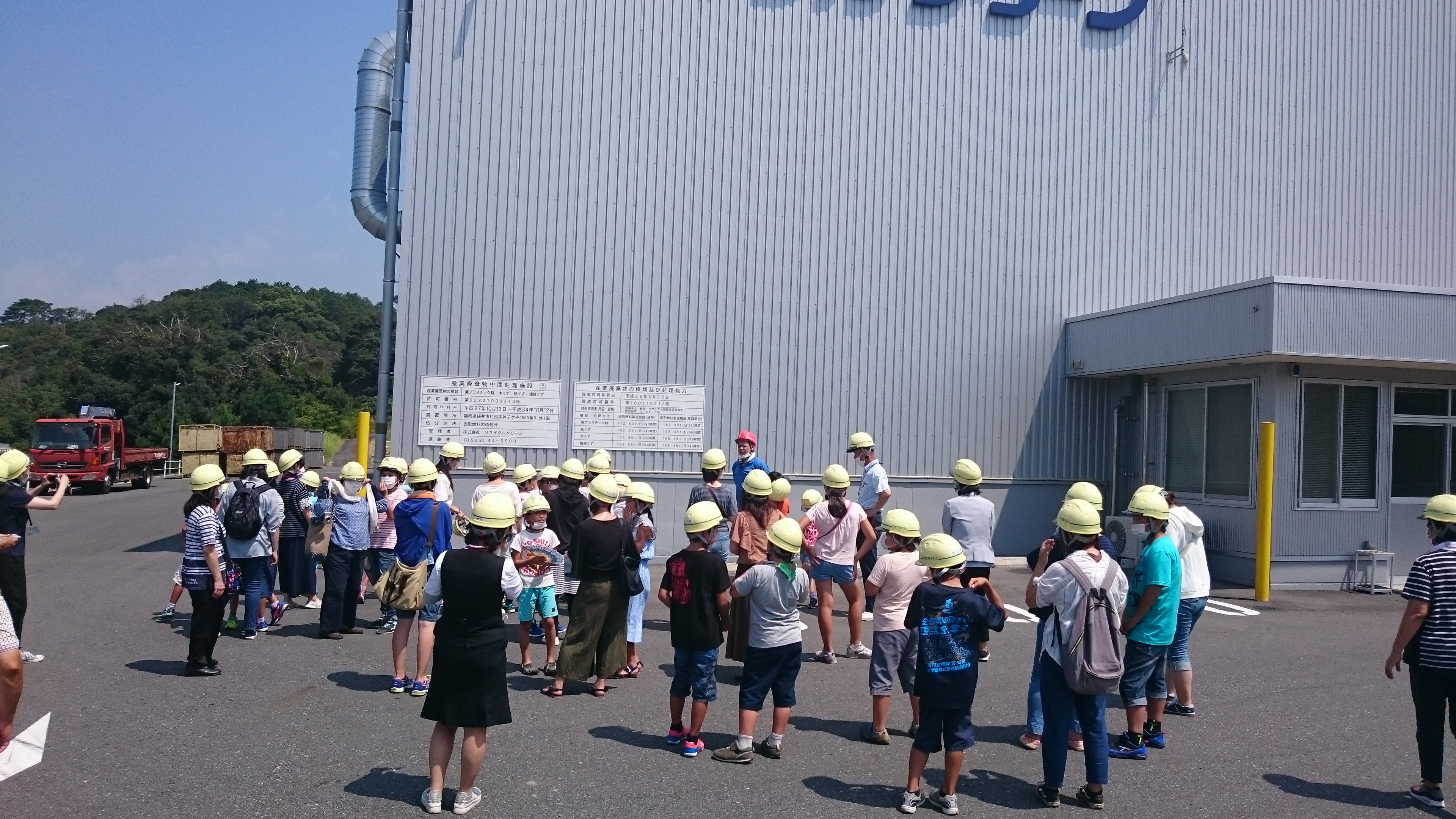 8月6日(月)、静岡県産業廃棄物協会主催の「ぼくらはさんぱい探偵団」44名様(中部支部、清水区の小学生親子18組)が袋井工場の施設見学にみえられました。折からの猛暑の中、研修室以外に冷房設備がない工場を約一時間、見学していただきました。